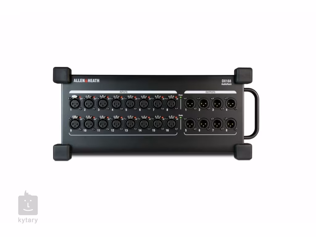 Die ALLEN&HEATH dLive DX168 ist eine tragbare Stagebox, die die Anzahl der Ein- und Ausgänge innerhalb des dLive-Systems (Kompatibilität mit MixRacks und S- und C-Class-Pulten), Avantis, SQ und AHM-64 erweitert. Er bietet 16 Mikrofonvorverstärker mit LED-Anzeige der Phantomspeisung und 8 Line-Ausgänge. Bis zu 6 DX168-Expander können an ein einzelnes dLive-System angeschlossen werden, 4 über MixRack und 2 über die Steuerkonsole, und erhöhen die Anzahl der Anschlüsse um ferngesteuerte 96 Eingänge und 48 Ausgänge. Die Verbindung zum Mischpult, MixRack und einem weiteren DX-Expander erfolgt über ein einziges Cat5e-Kabel, die redundante Verbindung zu kompatibler Hardware und die Verkettung mit einem weiteren DX168-Expander erfolgt über einen zusätzlichen Ethernet-Anschluss.