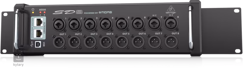 Die SD8 High-Performance-Stagebox von Behringer ist für Bands und Tontechniker geeignet, die ihren Sound immer in ihrer Nähe haben wollen. Die SD8 verfügt über acht I/O-Buchsen mit MIDAS-Mikrofonvorverstärkern, die ein kristallklares Signal mit einem sehr transparenten Sound liefern. Die Stage Box verfügt außerdem über AES50-Netzwerkanschlüsse und Steueranschlüsse für TURBOSOUND-Lautsprechersysteme mit ULTRANET-Unterstützung.