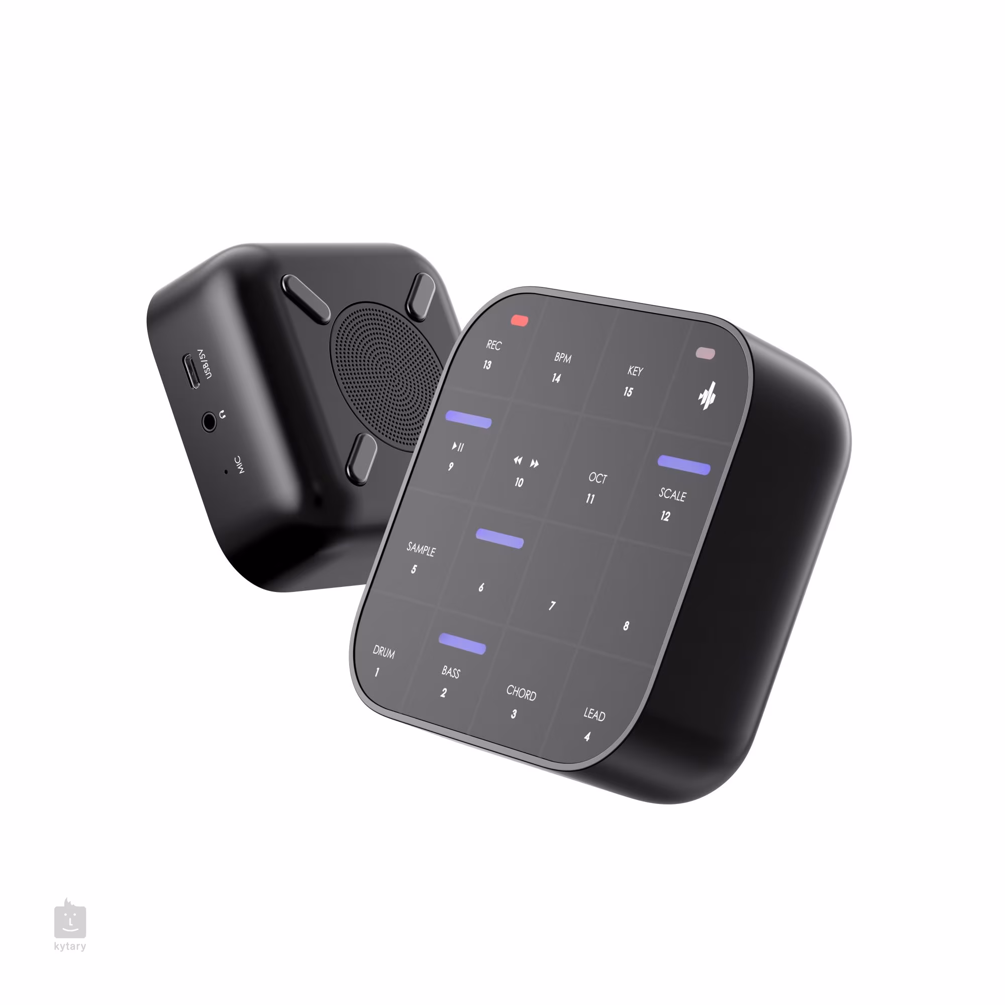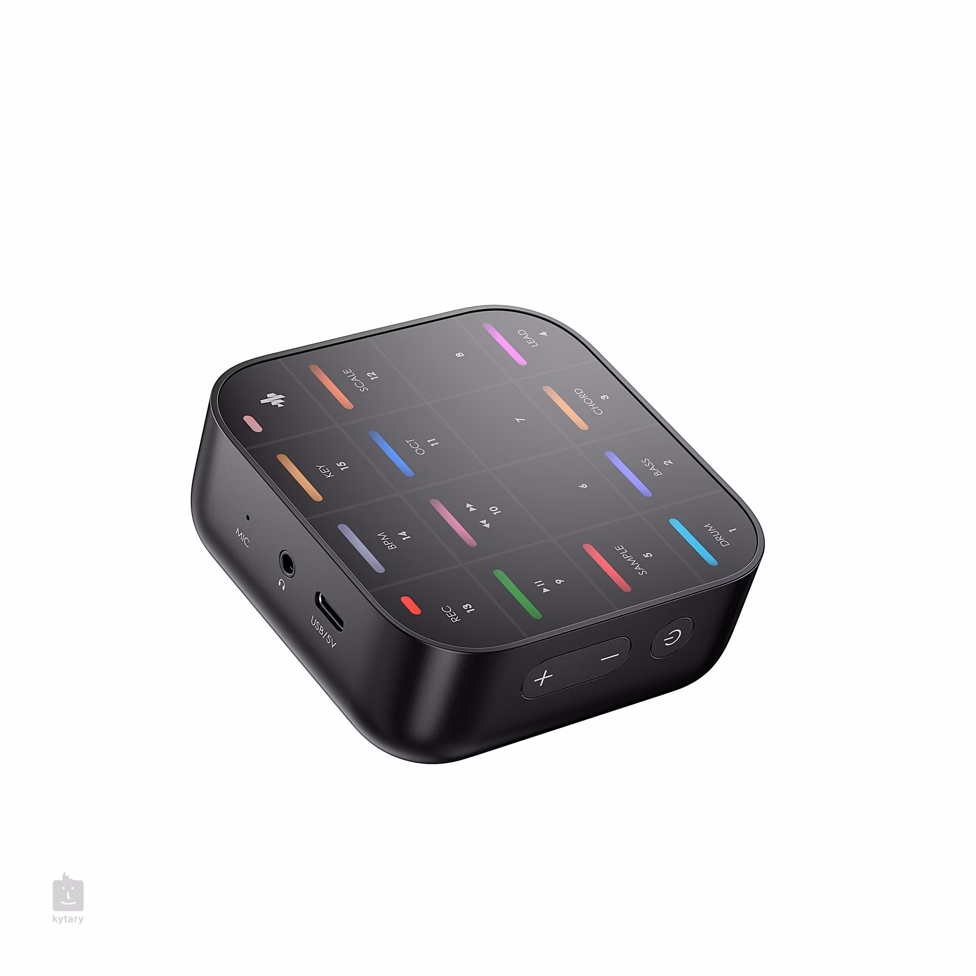 Die integrierte Sound-Engine sorgt für eine leistungsstarke musikalische Performance und ermöglicht die Erstellung von Schlagzeug, Basslinien, Akkorden und Melodien. Auf den Rhythmus reagierende RGB-LEDs verleihen dem Spiel eine visuelle Dimension, während Bluetooth und USB-C eine einfache Verbindung zu mobilen Geräten und Computern ermöglichen. Das Gerät ist mit iOS, Android und Windows kompatibel und kann auch als flexibler MIDI-Controller für eine Vielzahl von Musik-Apps und Software eingesetzt werden.