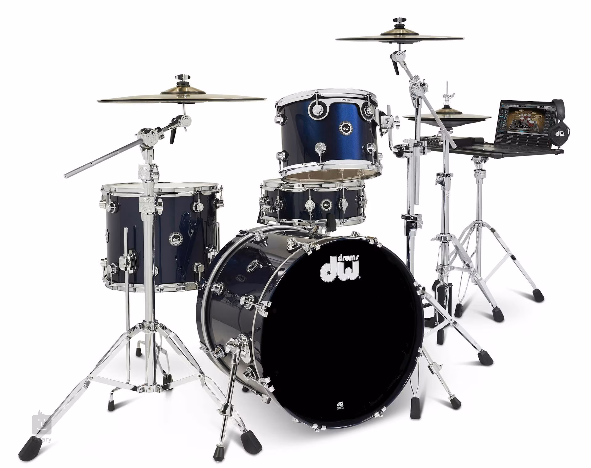 Das 4-teilige Kit von DW-E revolutioniert die Percussion-Industrie mit seiner Fähigkeit, zwischen akustischen und elektronischen Modi mit Hilfe von drahtloser Technologie zu wechseln. Dieses in den USA hergestellte Kit kombiniert authentische DW-Körper aus reinem nordamerikanischem Ahorn mit innovativer Elektronik. Jede Trommel verfügt über ein patentiertes Fächerbund-System und ermöglicht den einfachen Wechsel zwischen akustischen und elektronischen Fellen.