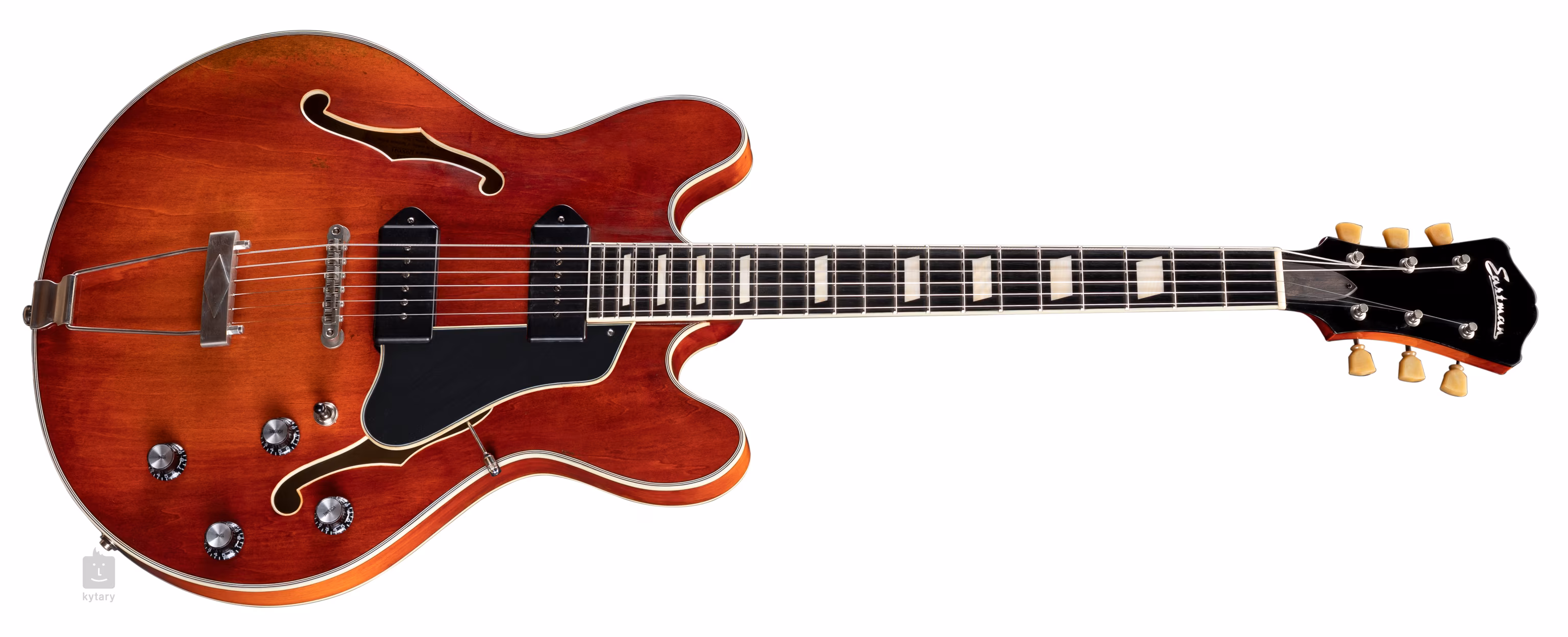 Die Eastman T64/TV-T ist eine Lube-E-Gitarre im Stil der beliebten "Thinline"-Double-Cut-Modelle ES-330 oder Casino, die Spieler mit hohen Ansprüchen an Verarbeitung und Klangqualität ansprechen dürfte.