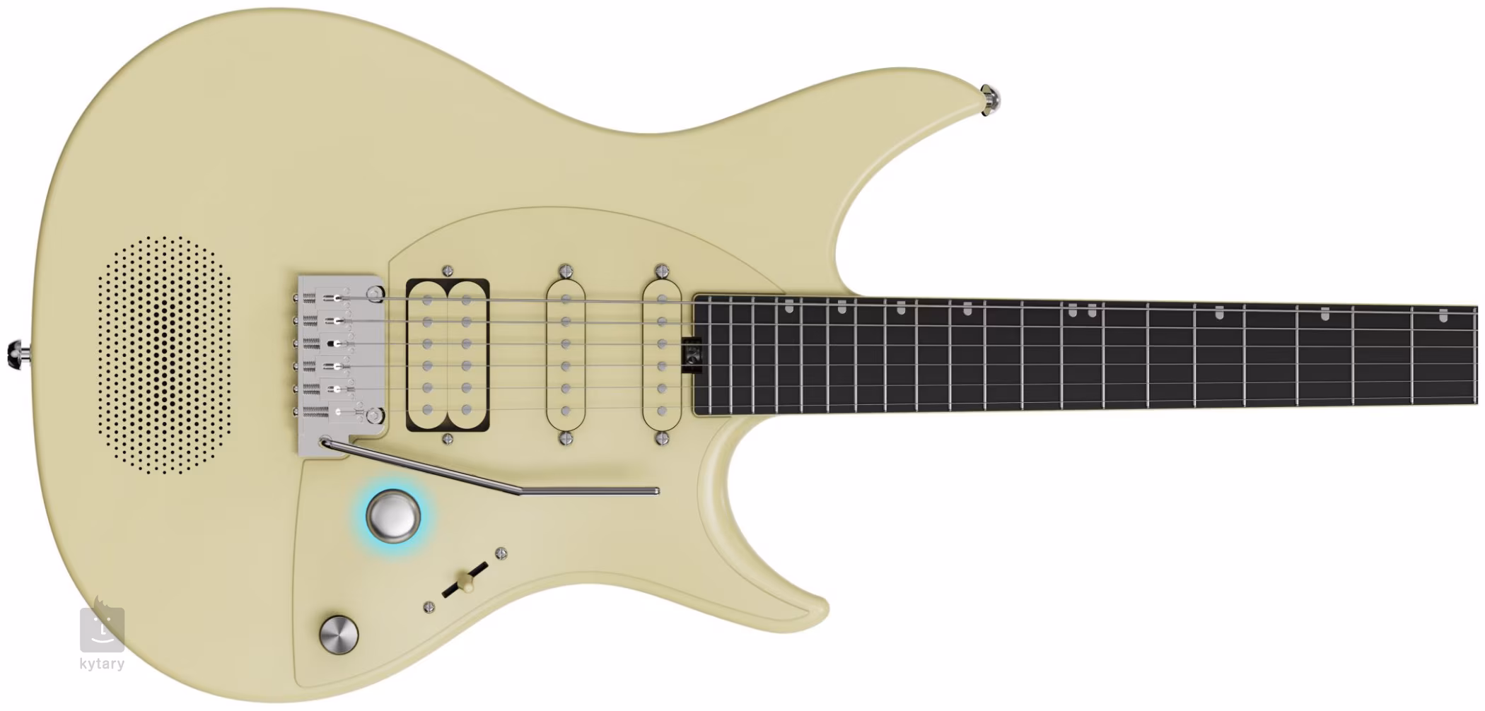 Die elektrische "Smart"-Gitarre Enya Inspire Ivory im Super ST-Design verfügt über einen eingebauten 15-Watt-Lautsprecher mit Bluetooth-Konnektivität, einen digitalen Vorverstärker mit vier Sound-Presets, einen eingebauten Akku, einen USB-Anschluss zum Aufladen und Aufnehmen unterwegs sowie einen Kopfhörerausgang. Individuelle Voreinstellungen können in der Enya Music App bearbeitet und mit digitalen Effekten (EQ, Delay, Reverb, Modulation) angereichert werden.