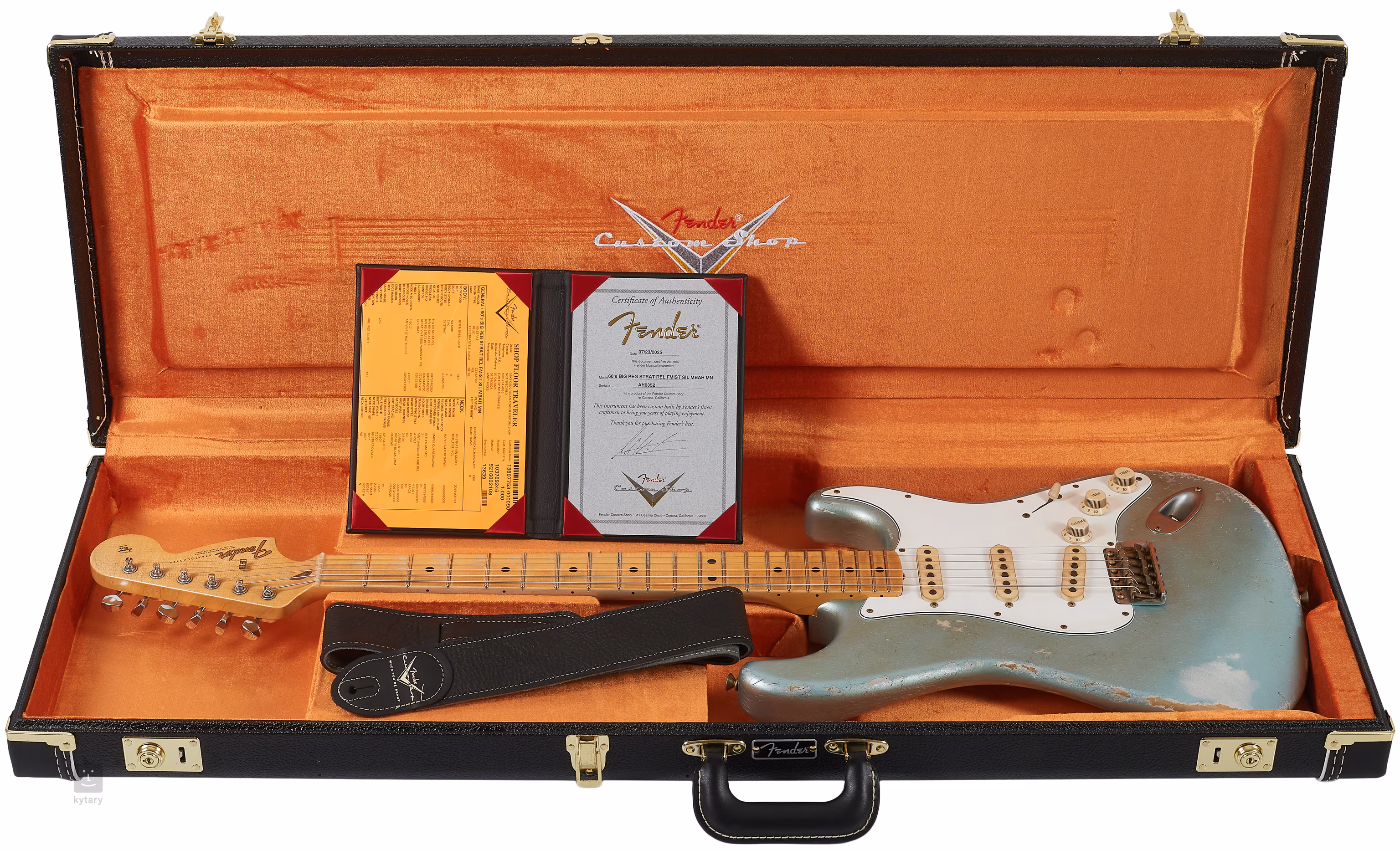 Die Gitarre wird in einem Koffer mit einem Gitarrengurt und einem Echtheitszertifikat geliefert.