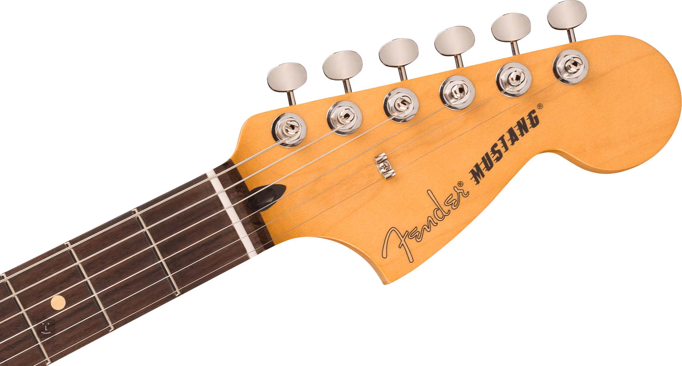 Die Fender Mustang mit ihrer charakteristischen Offset-Korpusform wurde in den frühen 1960er Jahren als Basismodell der E-Gitarre eingeführt, und vielleicht hat sich deshalb ein paar Jahrzehnte später die gesamte Alternative-Szene, angeführt von Kurt Cobain und John Frusciante, in sie verliebt. Der Erle-Korpus der Player II Mustang RW AQB ist mit einem glänzenden Polyester-Lack überzogen. Der Ahornhals mit "Modern C"-Profil und Satin-Finish sowie das Palisandergriffbrett mit abgerundeten Kanten bieten eine hervorragende Bespielbarkeit. Dank der kürzeren Mensur (610 mm) eignet sich die Mustang auch für Musiker, die mit Standard-Gitarren (Strat, Tele, Jazzmaster) nicht mithalten können.