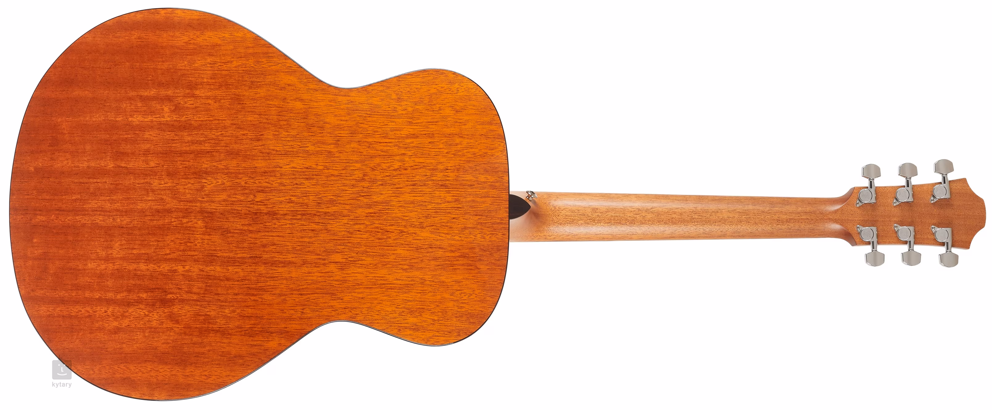Die Orientierung auf dem Ebenholz-Griffbrett wird durch vordere und seitliche Perlmutt-Punktmarkierungen erleichtert. Das transparente Schlagbrett lässt die natürliche Maserung des Holzes zur Geltung kommen, ohne die Resonanz des Resonanzbodens zu beeinträchtigen. Die präzise und stabile Stimmung wird durch verchromte Mechaniken mit einem Übersetzungsverhältnis von 1:18 gewährleistet. Die schöne Verarbeitung wird durch die Schildpattimitation mit fünf Lagen schwarzer und weißer Kontrastlinien und eine Rosette, die aus einem Doppelring mit Walnusseinlage besteht, unterstrichen.
