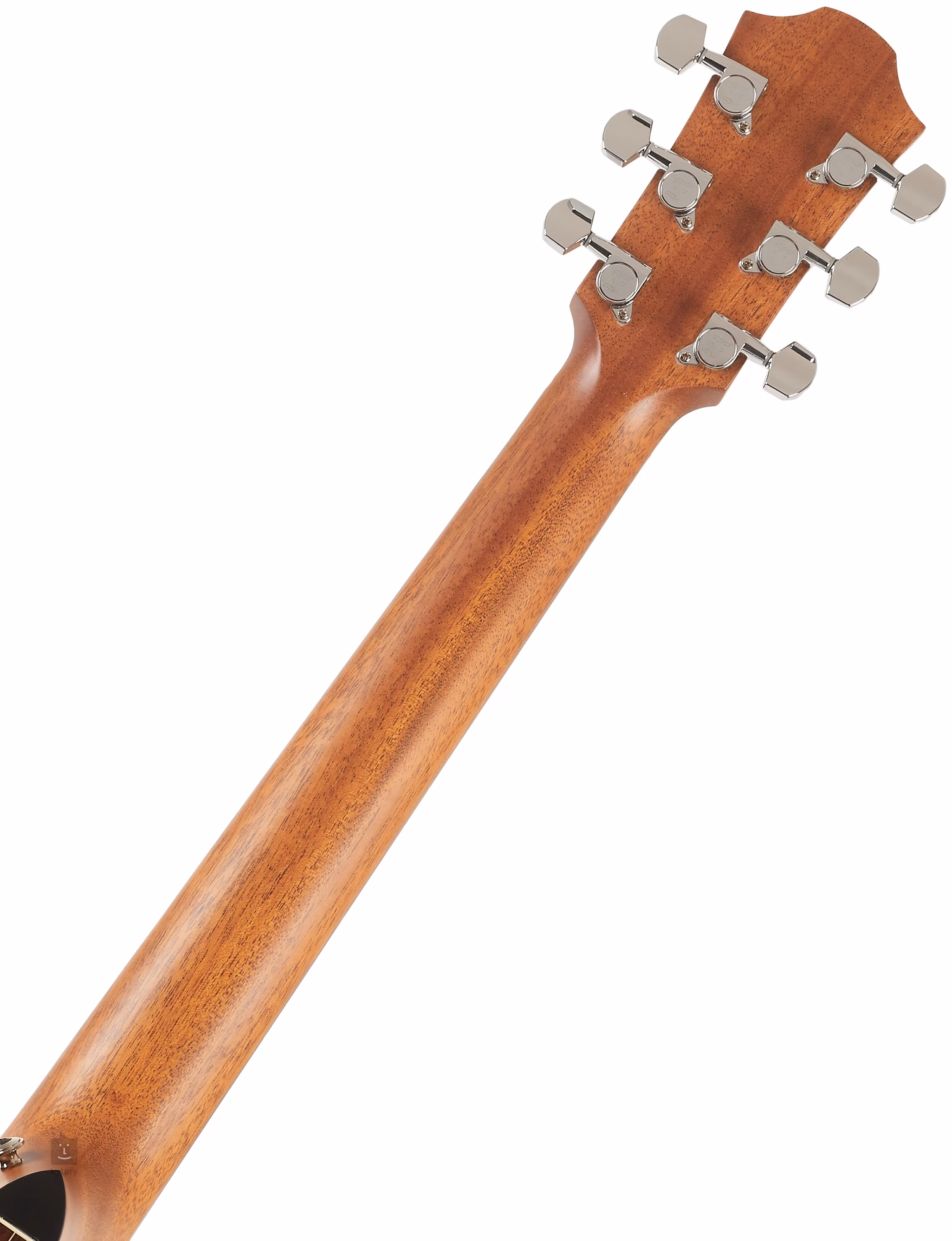 Die Orientierung auf dem Ebenholz-Griffbrett wird durch vordere und seitliche Perlmutt-Punktmarkierungen erleichtert. Das transparente Schlagbrett lässt die natürliche Maserung des Holzes zur Geltung kommen, ohne die Resonanz des Resonanzbodens zu beeinträchtigen. Die präzise und stabile Stimmung wird durch verchromte Mechaniken mit einem Übersetzungsverhältnis von 1:18 gewährleistet. Die schöne Verarbeitung wird durch ein Binding aus Elfenbeinimitat mit fünf Lagen schwarz-weißer Kontrastlinien und eine Rosette aus einem Doppelring mit Walnuss-Intarsien unterstrichen.