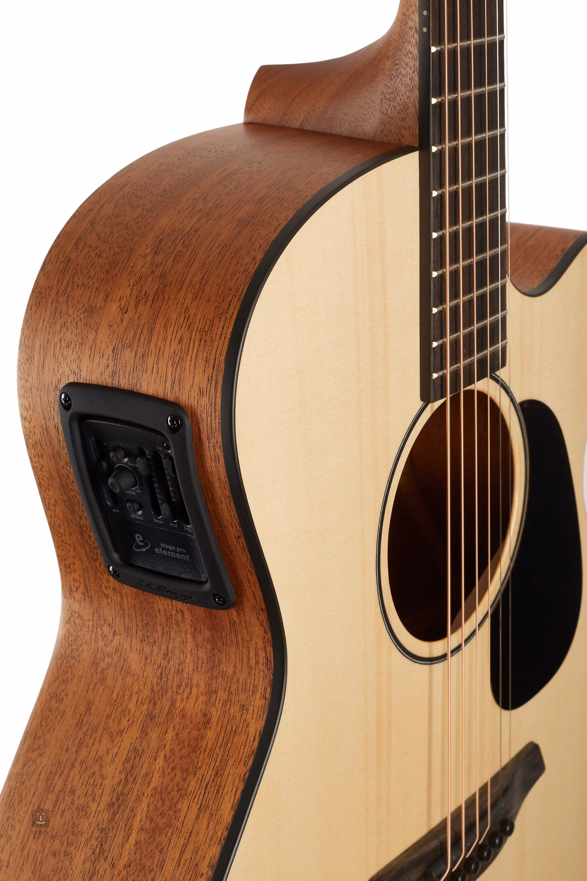 Die Master's Choice Instrumente sind mit der hochwertigen LR Baggs Stagepro Element Elektronik ausgestattet. Der beleuchtete Vorverstärker der Gitarre verfügt über ein integriertes Stimmgerät, einen Dreiband-EQ, einen Notch-Filter zur Unterdrückung von Rückkopplungen und einen Schalter zur Phasenumkehrung.