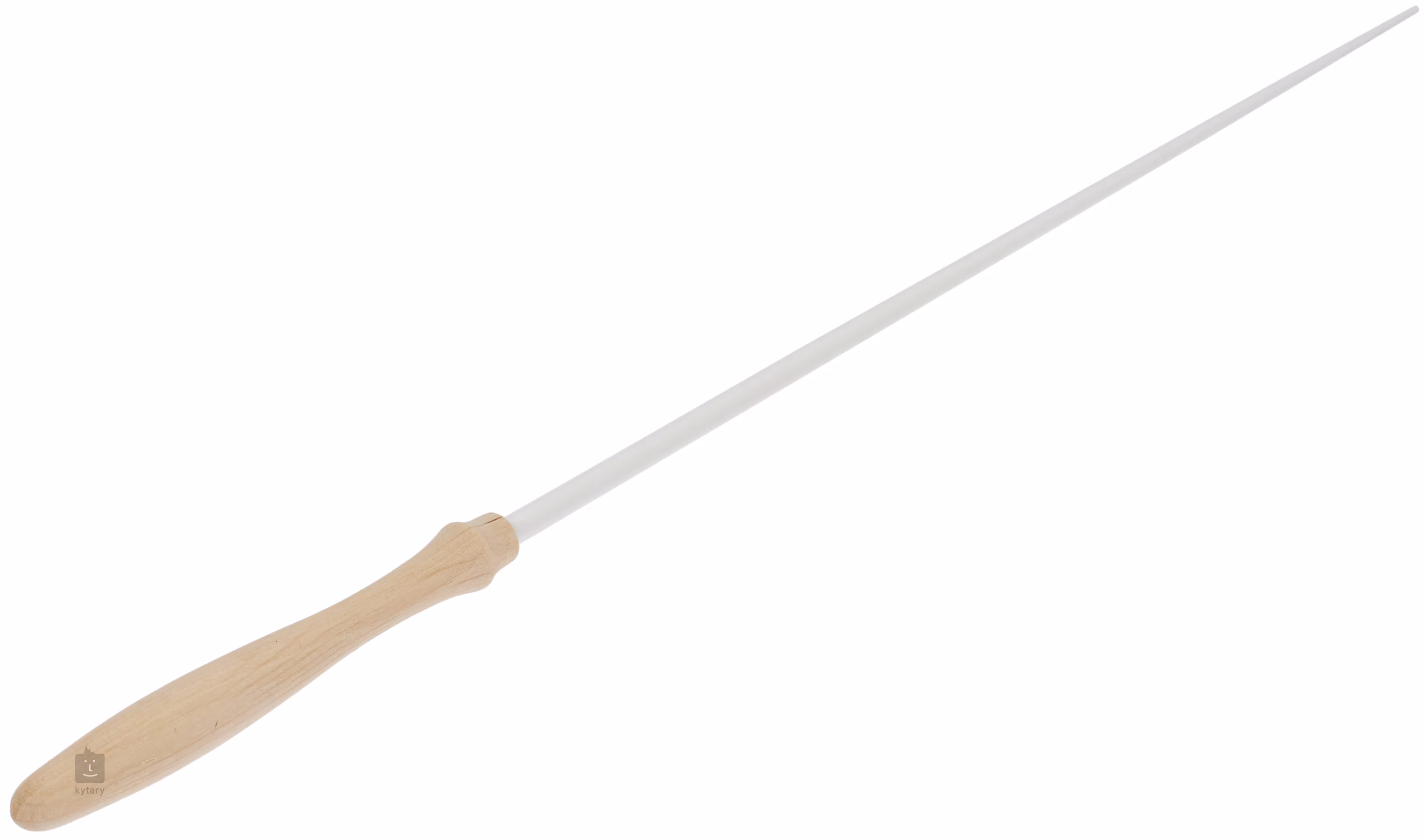 39 cm langer Stab aus weiß lackierter Buche mit Holzgriff. Handgefertigt.