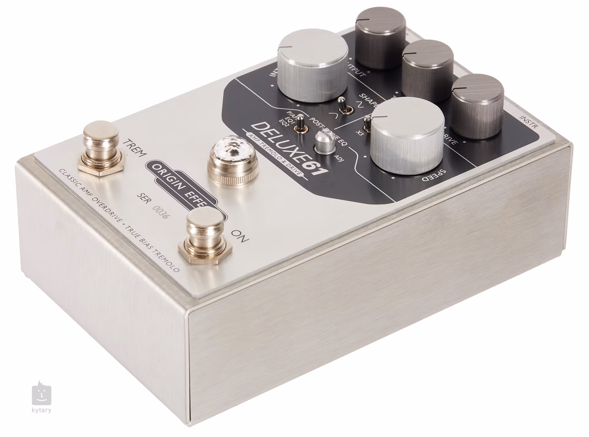 Das Deluxe 61 bietet authentische Tremolo-Effektsounds von Röhrengeräten aus den späten 50er und frühen 60er Jahren sowie eine breite Palette von absolut glaubwürdigen "Röhrensounds", die dem berühmten Fender Brown Deluxe von 1962 nachempfunden sind. Die beiden Fußschalter des Pedals ermöglichen es, die Box als reinen Overdrive zu nutzen und bei Bedarf eine separate Tremolo-Schaltung zu aktivieren.