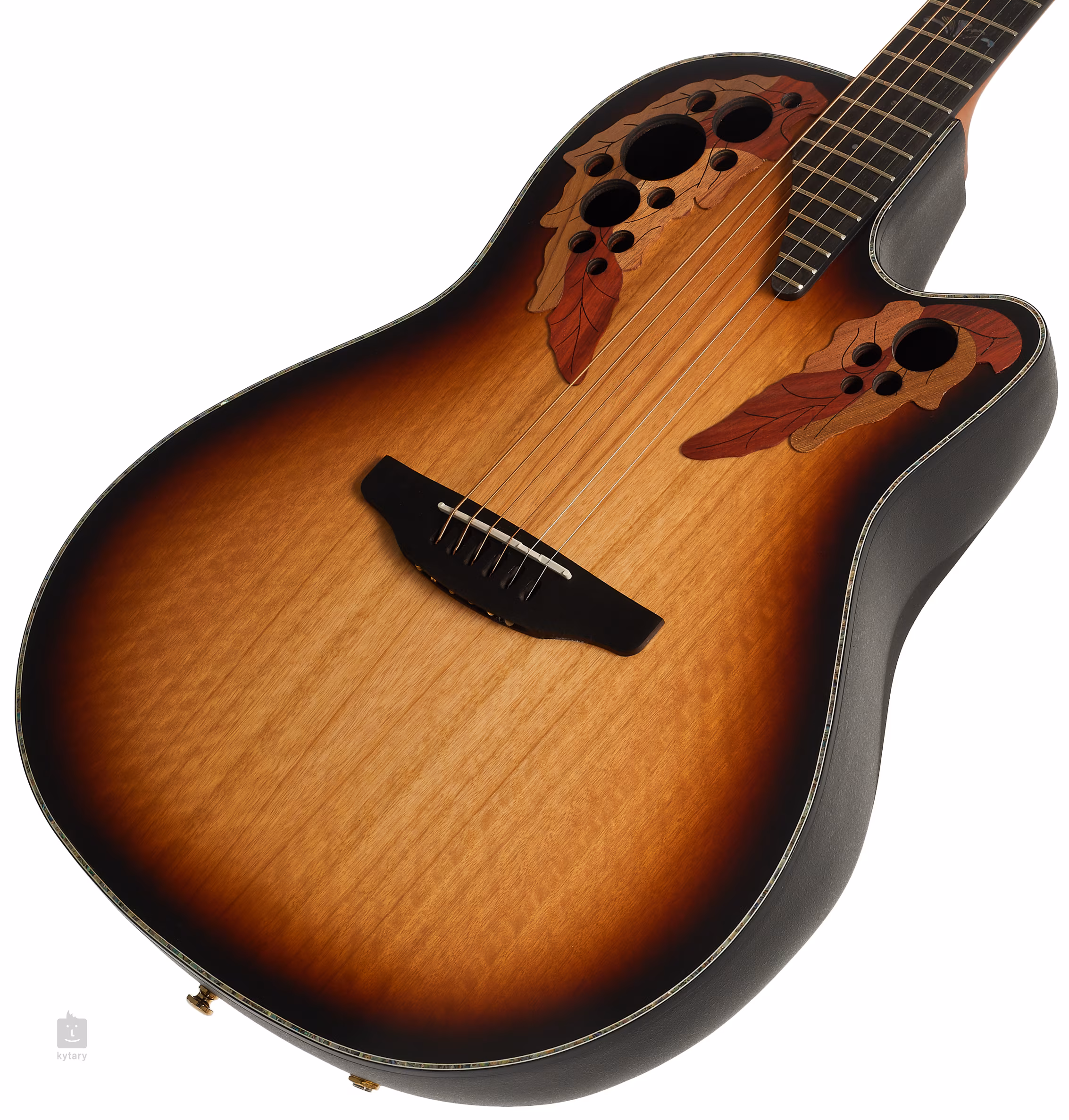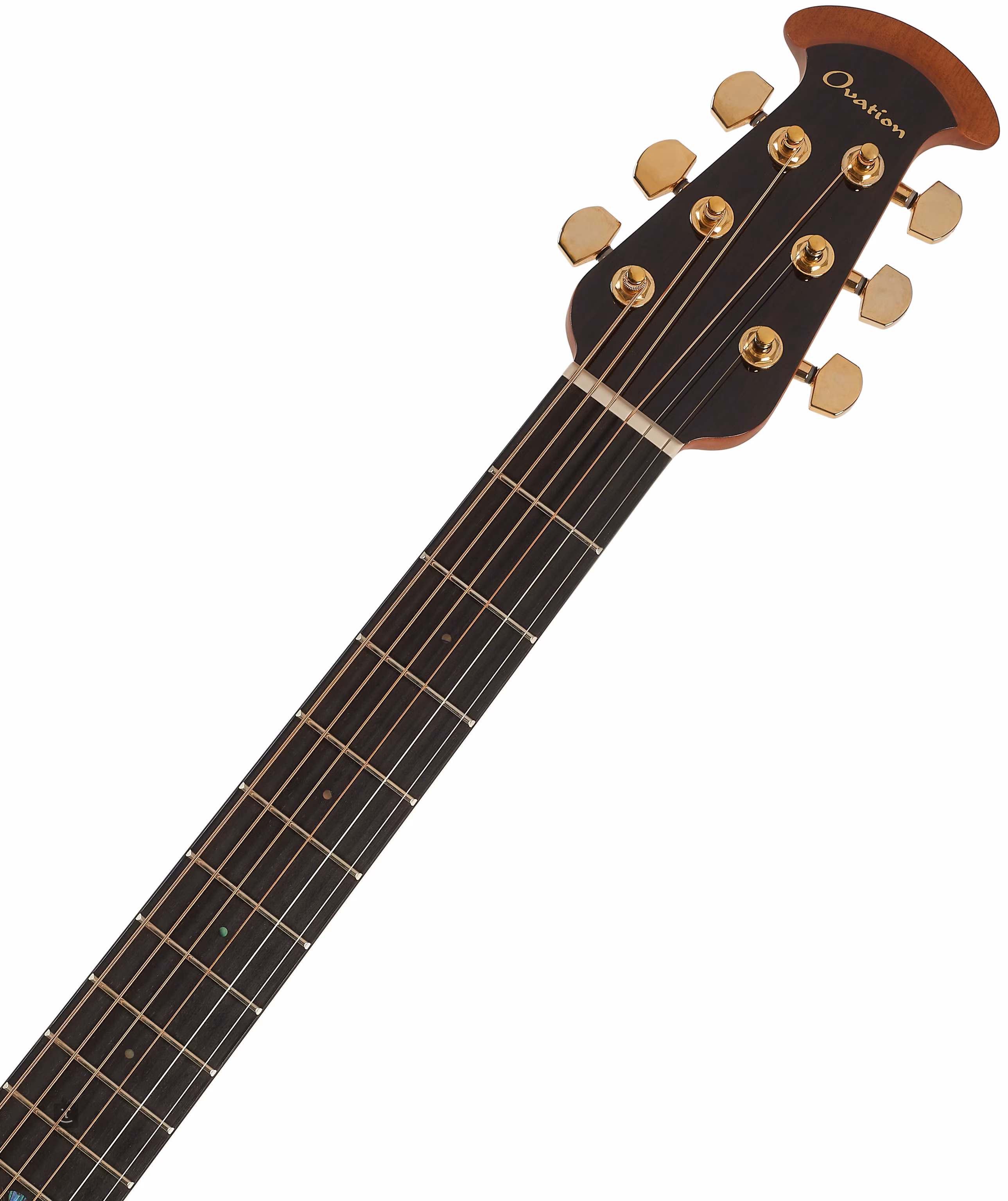 Die Gitarre ist mit einem Ovation Slimline CP100 Tonabnehmer und OP-4CT Vorverstärker mit Dreiband-Korrekturen und eingebautem Stimmgerät ausgestattet.
