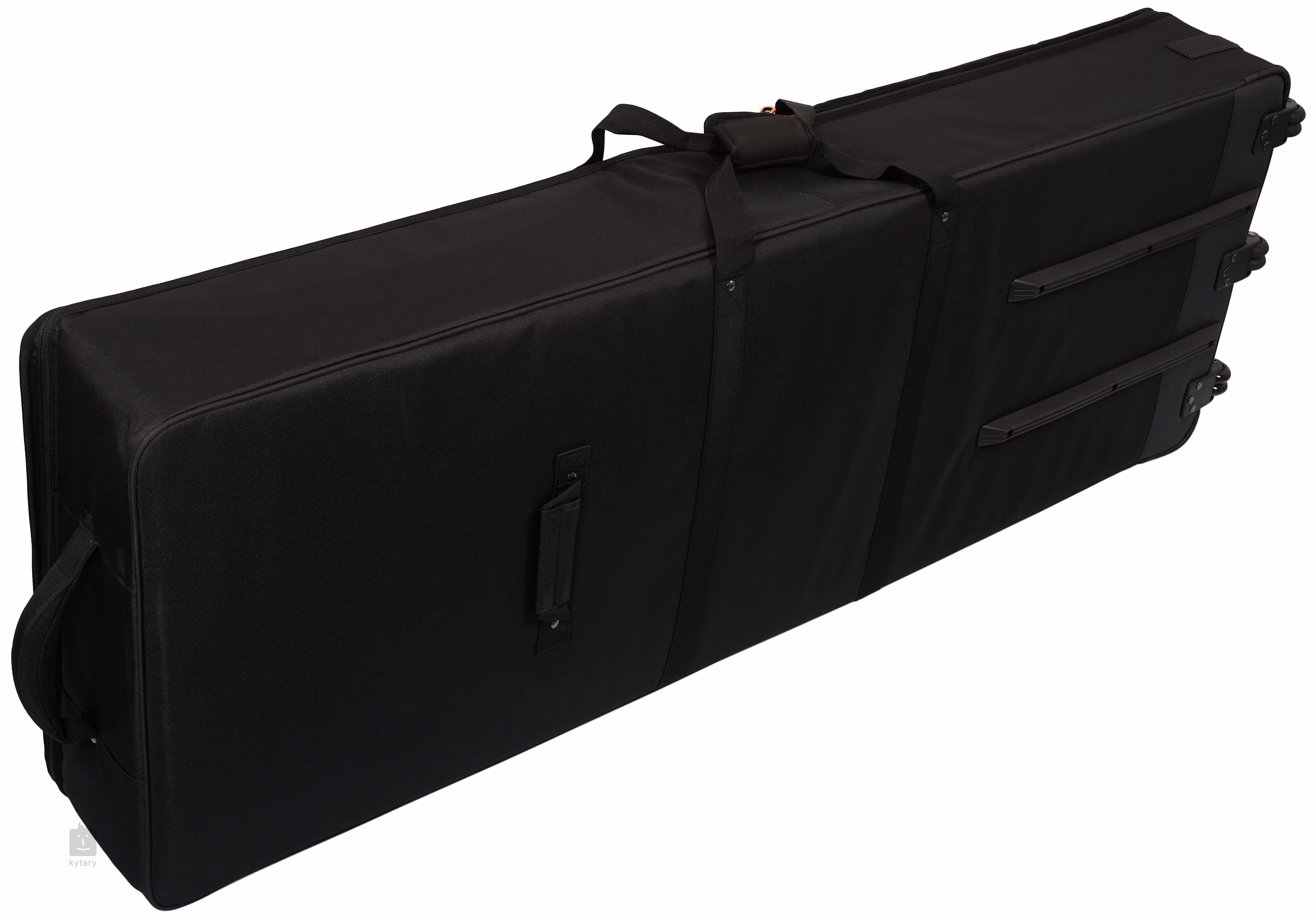 Das halbstarre Design zeichnet sich durch haltbare Außenmaterialien, seitliche Aufprallwände, dicke Schaumstoffpolsterung im Inneren und verstellbare Gurte aus, um das Instrument während des Transports zu sichern und zu schützen. Drei eingebaute Rollen, rutschfeste Schienen und verstärkte Griffe erleichtern den Transport, während die extragroße Fronttasche ideal für die Unterbringung von Pedalen, Mikrofonen und anderem Zubehör ist.
