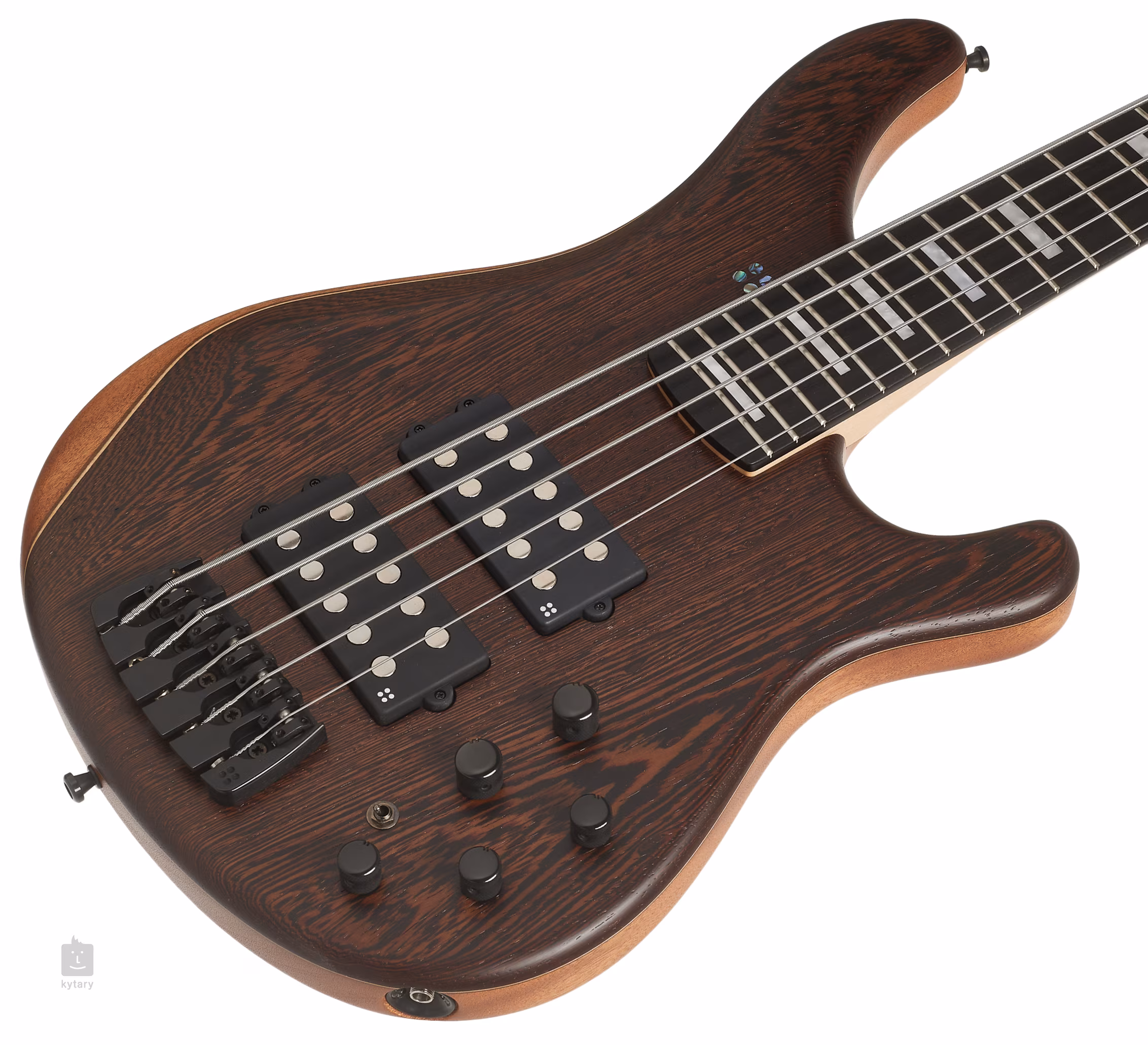 Der Korpus dieses Basses ist aus Erle gefertigt, der Hals aus kanadischem Ahorn. Er ist mit sechs Schrauben verschraubt, die ihn in einer absolut exakten Position halten. Das Griffbrett ist aus Ebenholz und verfügt über 24 Bünde. Das Instrument misst 864 Millimeter.