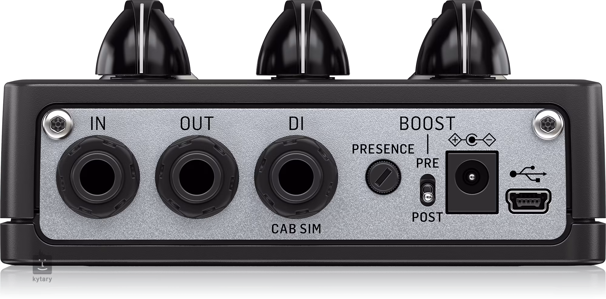 Eine separate Booster-Sektion ermöglicht es, einzustellen, ob der Booster durch den Vorverstärker (mehr Verzerrung) oder nach dem Vorverstärker (reine Lautstärkeanhebung) geschaltet wird. Das Signal kann auf drei Arten vom Vorverstärker gesendet werden - über den Standardausgang zum hinteren Verstärker, direkt in den Mix oder über den PA-DI-Ausgang mit Cab-Simulation (Celestion 4x12 G12M Heritage) und schließlich zu den Kopfhörern, wenn man abends etwas ungestörte Bewegung braucht.