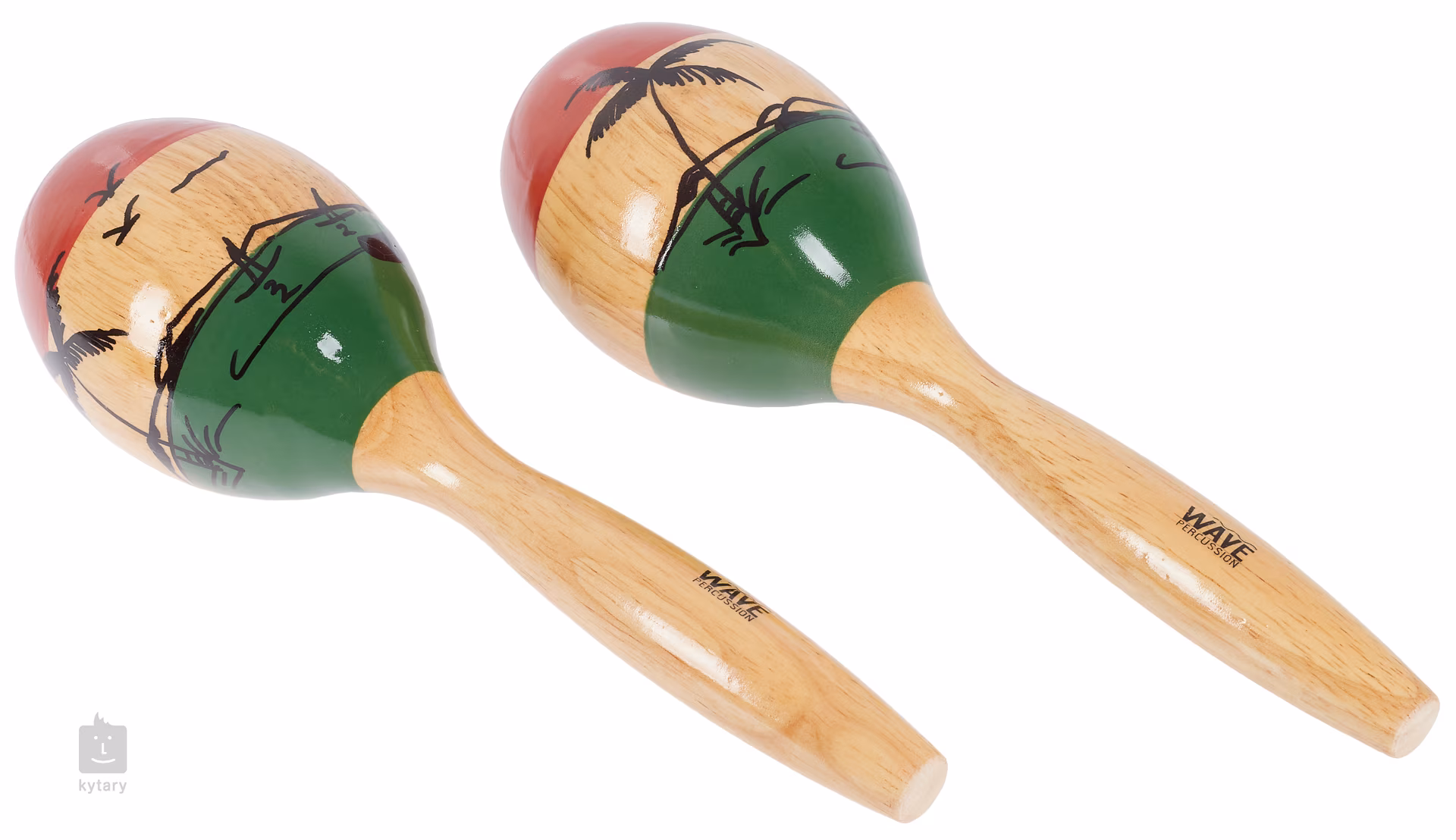 Ein Paar Rumbablocks mit Holzgriff und einem "Kegel" aus Kunststoff, der einen angenehm warmen und lauten Klang erzeugt.